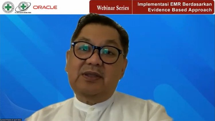 Wakil Ketua 3 Bidang Kelembagaan dan Kerjasama PERSI dr. Koesmedi Priharto, Sp.OT, M.Kes saat membuka acara menyatakan serial ini akan diselenggarakan empat kali sebagai bentuk dukungan PERSI bagi rumah sakit mempersiapkan diri jelang implementasi kewajiban EMR pada 1 Januari 2024.
